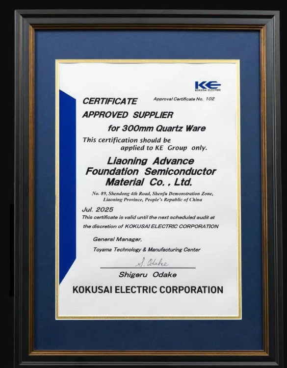 中國粉體網訊 近日,遼寧拓邦鴻基半導體材料股份有限公司在12英寸半導體石英器件領域取得了重大突破,成功通過了全球半導體設備龍頭國際電氣株式會社(KOKUSAI ELECTRIC CORPORATION,簡稱KE集團)的供應商資格認證。