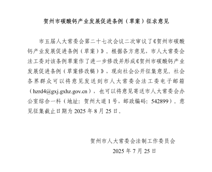 中國粉體網訊 據了解,該文件規定了25條促進條例,以立法的形式,規定適用范圍、基本原則和政府職責,將碳酸鈣產業與賀州市發展深度融合。