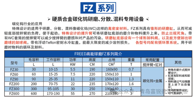 硬質合金WC粉體研磨、混料,濕磨工藝,細晶混料防氧化,惰性氣氛保護,高比重物料混料、研磨,替代滾筒球磨,使用FZ系列攪拌球磨。