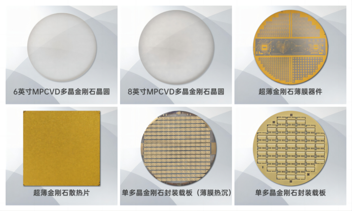 研討會上,由河南黃河旋風股份有限公司、蘇州博志金鉆科技有限責任公司合資成立的河南乾元芯鉆半導體科技有限公司重磅推出了超薄金剛石散熱片、超薄金剛石薄膜器件、單/多晶金剛石封裝載板、改性金剛石粉末與金剛石銅復合材料四大類產品。據悉,金剛石類散熱封裝載板攻克了大尺寸襯底生長、表面處理、精密薄膜等技術難題,已實現高功率芯片和器件應用的工程化。