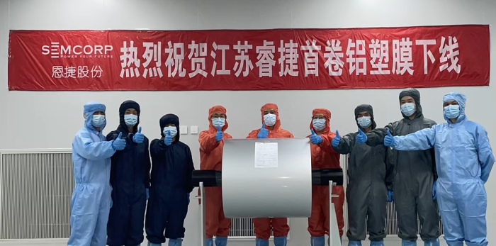 江蘇睿捷是恩捷股份布局于華東地區以鋁塑膜為核心的重要生產基地,總投資16億元,總占地面積187畝,規劃建設8條鋁塑膜生產線,分兩期實施。項目全面建成達產后,可實現年產鋁塑膜2.8億平方米。2023年,江蘇睿捷首卷鋁塑膜成功下線。