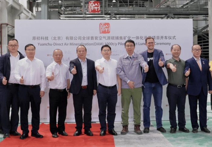 2024年10月24日,原初科技舉行全球首套空氣源碳捕集礦化一體化示范項目開車儀式。