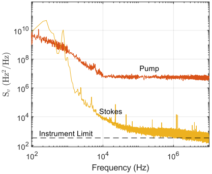 研究團(tuán)隊(duì)在一塊僅有幾毫米大小的金剛石晶體中構(gòu)建了精密的光學(xué)腔體,隨后引入一束線寬超過(guò)10MHz的“噪聲型”激光,當(dāng)這束激光進(jìn)入金剛石晶體的光學(xué)腔體后,與晶體內(nèi)部的高頻振動(dòng)發(fā)生拉曼散射相互作用。經(jīng)過(guò)這一獨(dú)特的處理過(guò)程,輸出激光的線寬被成功壓縮至1kHz,達(dá)到了現(xiàn)有檢測(cè)設(shè)備的極限水平。