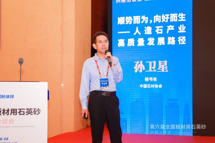 孫衛星秘書長首先剖析了石英石產業當前面臨的核心問題:國內有效需求不足,行業內卷現象凸顯。在此基礎上,他從供給生產側與需求消費側雙維度出發,系統提出了人造石產業實現高質量發展的路徑;同時,針對石英石板材企業,給出了一系列提升核心競爭力的具體建議。最后,他還詳細闡述了中國石材協會在推動行業發展過程中所肩負的責任與使命。
