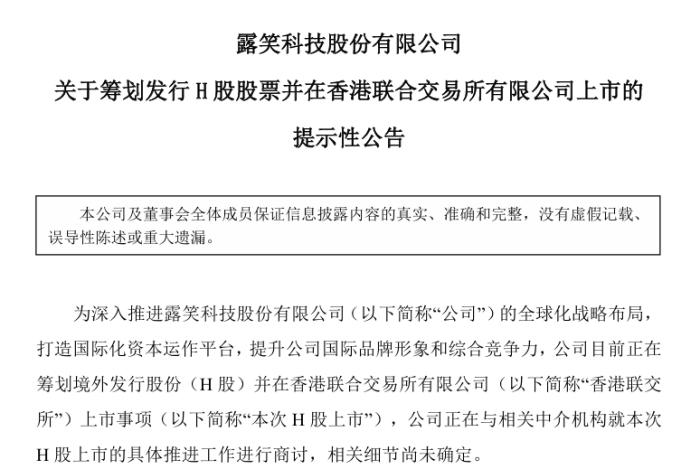 8月11日,露笑科技發布公告,公司正在籌劃境外發行H股并在香港聯交所上市事項,目前正在與相關中介機構就本次H股上市的具體推進工作進行商討,相關細節尚未確定。