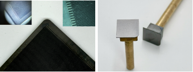 水導(dǎo)激光多晶金剛石切槽(左)和金剛石切片(右),圖源:科詩特