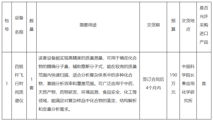 項目名稱:中國科學院長春應用化學研究所四極桿飛行時間質譜儀采購項目
