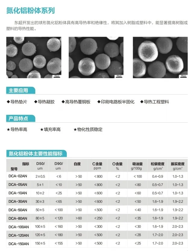 純度高,粒徑分布窄,吸油值低,填充量高,導熱性能好等。樹脂中當導熱填料,充分混合均勻可制備導熱膠。