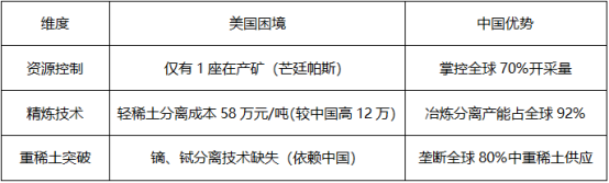 長期:各國加速構建本土閉環——美國補貼磁廠、澳 洲投建重稀土分離廠,但中國憑借“資源+冶煉+應用”三位一體優勢,仍主導千億市場定價權。
