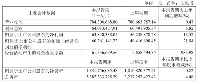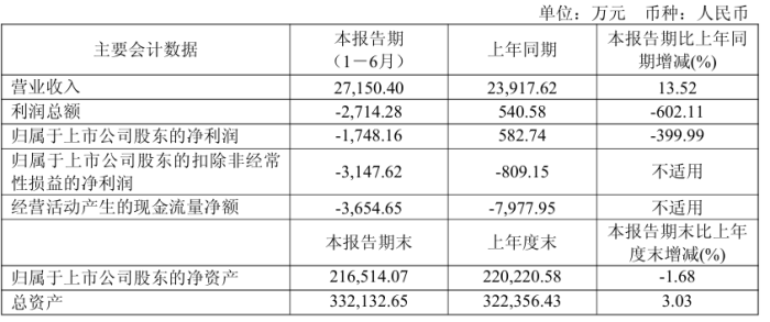 公司上半年實現(xiàn)營業(yè)收入2.72億元,同比增長13.52%;歸母凈利潤-1748.16萬元,上年同期582.74萬元;扣非歸母凈利潤-3147.62萬元,上年同期-809.15萬元。