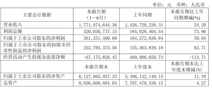 天馬新材:上半年營收同比增長22.42%