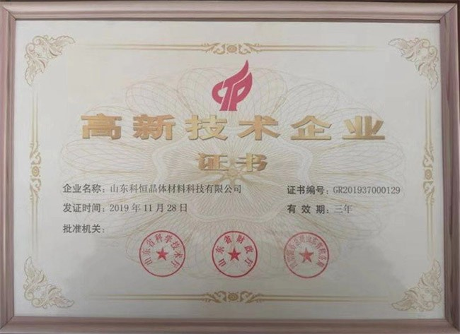 山東科恒秉著誠實守信的辦廠宗旨,被當地政府評為工業項目建設先進單位、科技創新先進企業、銀行AAA級信用等級企業等榮譽稱號,2015年底被評為國家高新技術企業。