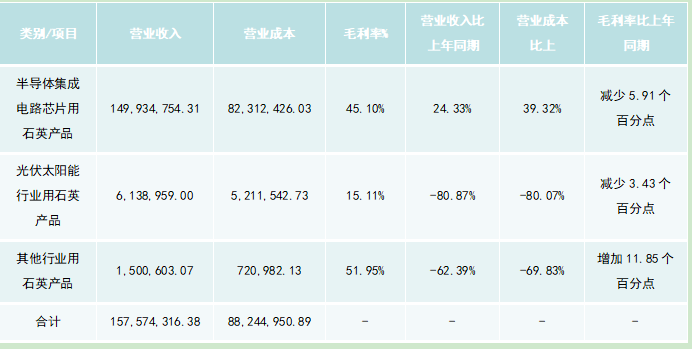 光伏業(yè)務(wù)短期調(diào)整:光伏太陽(yáng)能行業(yè)用石英產(chǎn)品收入同比下降80.87%,主要受本期光伏市場(chǎng)需求大幅下滑影響,屬于行業(yè)周期性波動(dòng),暫未對(duì)公司整體經(jīng)營(yíng)造成重大沖擊。