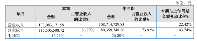 報告期末,公司實現營業收入133,083,171.59元,與上年同期比較增長22.42%。其中,高壓電器用粉體材料、其他精細氧化鋁粉體材料營收同比分別增長93.23%、96.75%,成為拉動營收增長的重要動力。報告期內,公司精準把握市場動態,靈活調整經營策略與產品結構,積極響應下游行業需求的變化。