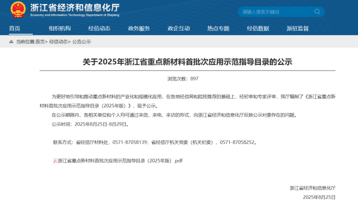 近日,浙江省經濟和信息化廳正式發布《重點新材料首批次應用示范指導目錄(2025年版)》(公示稿)。目錄中有陶瓷基板、半導體陶瓷部件、特種陶瓷高端應用、先進陶瓷輔料等多項先進陶瓷材料入列,明確關鍵性能指標,劃定核心應用領域。