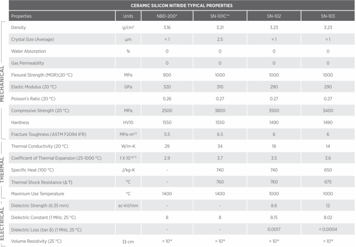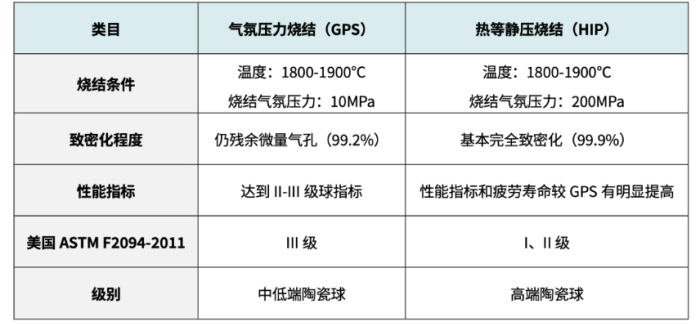 GPS氮化硅與HIP氮化硅性能對照表