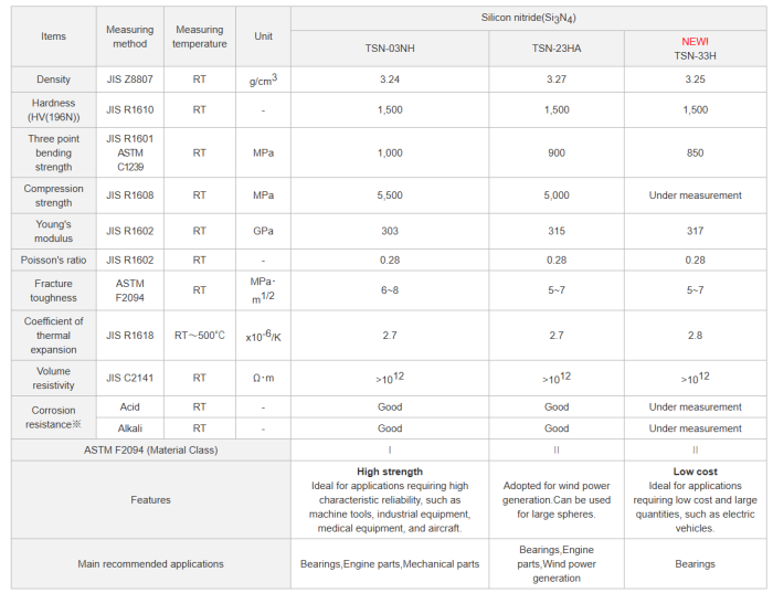 東芝集團從20世紀60年代開始著手開發氮化硅(Si3N4)陶瓷,并早在1974年就取得了氮化硅化合物的相關專利。東芝材料公司于2003年10月從東芝集團分拆出來,致力于推進氮化硅陶瓷球的研發和生產。憑借在滿足高速旋轉及抗電解腐蝕(應用于機床、風力發電機及軌道車輛等)軸承球領域的深厚積累,該公司占據了全球約50%的市場份額。
