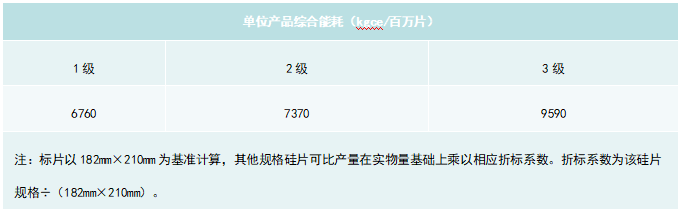 明確能耗等級:太陽能電池用硅單晶1級綜合能耗≤2.27kgce/kg,硅單晶片(182mm×210mm標片)1級能耗≤6760kgce/百萬片,其他規格需按折標系數換算,推動企業通過工藝優化降低單位能耗。