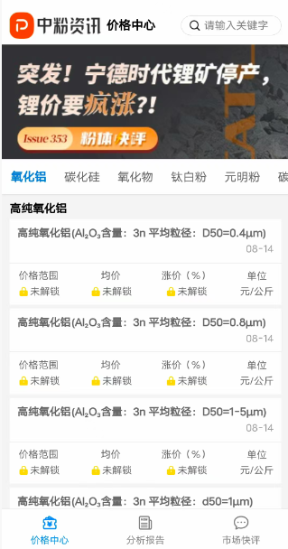 5、 知價格:了解粉體價格,讓粉體材料及相關(guān)產(chǎn)業(yè)數(shù)據(jù)為你創(chuàng)造價值。