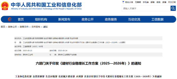 《工作方案》提出主要目標:2025-2026年,建材行業恢復向好,盈利水平有效提升,產業科技創新能力不斷增強,綠色建材、先進無機非金屬材料產業規模持續增長,其中2026年綠色建材營業收入超過3000億元,綠色低碳和數字化發展水平明顯提高。