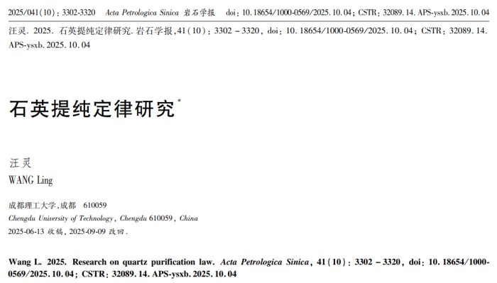 近三年,汪靈教授進(jìn)一步補(bǔ)充實驗數(shù)據(jù),最終完成了《石英提純定律研究》一文,并于近日在《巖石學(xué)報》高純石英專題發(fā)表。該文章研究和探討了石英提純定律的實驗依據(jù)、理論依據(jù)及重要意義,同時還分析和回答了一些高純石英行業(yè)比較關(guān)心的重大理論問題。