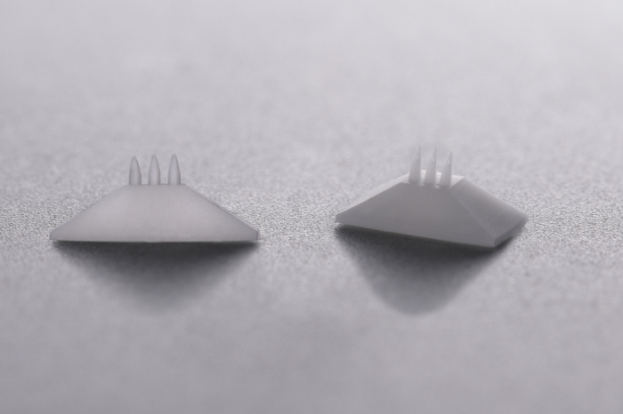 陶瓷空心微針:采用氧化鋁和氧化鋯等高強(qiáng)度陶瓷材料,針尖僅3微米,陶瓷材料的高強(qiáng)度特性使其可反復(fù)穿刺100次以上,無斷針、彎針風(fēng)險(xiǎn),確保使用穩(wěn)定可靠。支持無痛經(jīng)皮給藥,提高藥物利用率,部分藥物利用率從10%提升至90%,為藥物注射提供了更高效的選擇。應(yīng)用于醫(yī)美(玻尿酸、膠原蛋白注射)及藥物遞送(胰島素、疫苗)。