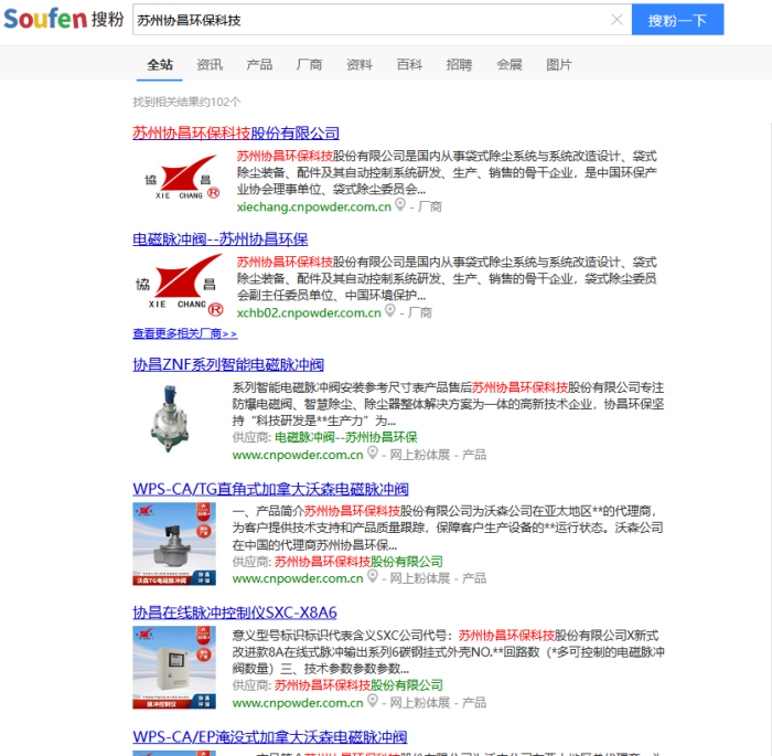 粉體網為蘇州協昌提供搜索關鍵詞綁定與優先展示服務。當用戶在粉體網搜粉引擎搜索 “蘇州協昌環?萍肌薄胺垠w除塵設備” 等核心關鍵詞時,粉體網平臺及蘇州協昌的企業展臺將在搜索結果中獲得首位推薦,相關產品也會優先展示。這一服務從流量入口精準鎖定目標客戶,大幅縮短品牌曝光路徑,有效提高企業獲客效率與詢盤轉化率,讓有粉塵治理需求的粉體企業快速找到靠譜合作伙伴。