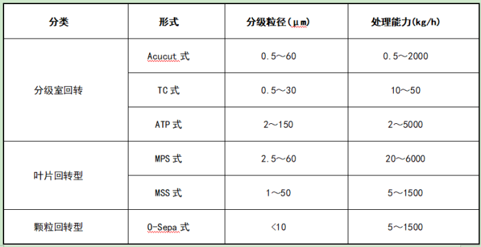 由于超細粉體在多個領域的發展與應用,也促進了超細粉體分級技術的進步,其中渦輪式氣流分級機由于分級效率和分級精度高,操作彈性大,因此成為目前主流的超細粉體分級設備。