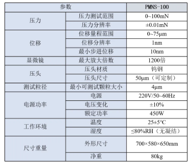 設備由高精度力學測試系統(tǒng)、高精度位移測試系統(tǒng)、高倍率光學顯微鏡與自動化控制平臺組成。工作時可先在高倍率的光學顯微鏡下實現(xiàn)對顆粒大小和形貌的初步分析,然后采用高精度的控制系統(tǒng)對粉末進行加壓測試。測試過程中可實現(xiàn)對壓力和位移的實時記錄,輸出壓力-位移曲線,自動尋找壓潰點計算出抗壓強度。