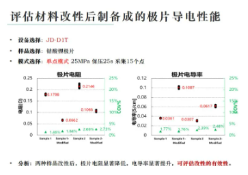 極片電阻儀:用于測試正負極極片電阻,也可測試極片壓實密度。設備最大可提供1T壓力,電阻測試范圍大(1µΩ~3.1kΩ),精度高(±0.3%F.S),厚度測量精度可達±1um。