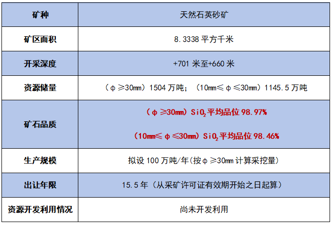 中國粉體網(wǎng)訊 近日,新疆阿勒泰地區(qū)自然資源局發(fā)布4則天然石英砂采礦權(quán)出讓公告,分別為新疆福海縣147南二區(qū)天然石英砂礦、新疆阿勒泰市640臺地Ⅱ-3區(qū)天然石英砂礦、新疆阿勒泰市640臺地Ⅱ-4區(qū)天然石英砂礦和新疆吉木乃縣穆乎爾岱Ⅰ區(qū)南3號天然石英砂礦,資源總量4373.44萬噸。