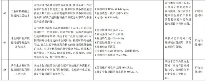 新版目錄共包含67項技術和產品。其中,多項非金屬礦物功能材料入選,推廣應用前景良好。包含:土壤污染治理礦物功能材料、連續玄武巖纖維復合材料管道、二氧化硅絕緣電纜、高性能耐火材料、高導熱金剛石金屬復合材料。另外,多項非金屬礦選礦、提純、應用技術入選,為推動建材產業綠色、高端、可持續性發展助力。包含:工業礦物精細分級提純工藝技術、非金屬礦物深度提純超導磁選裝備與技術、共伴生含氟礦物氟資源回收利用工藝技術、預水化膨潤土防滲卷材技術。