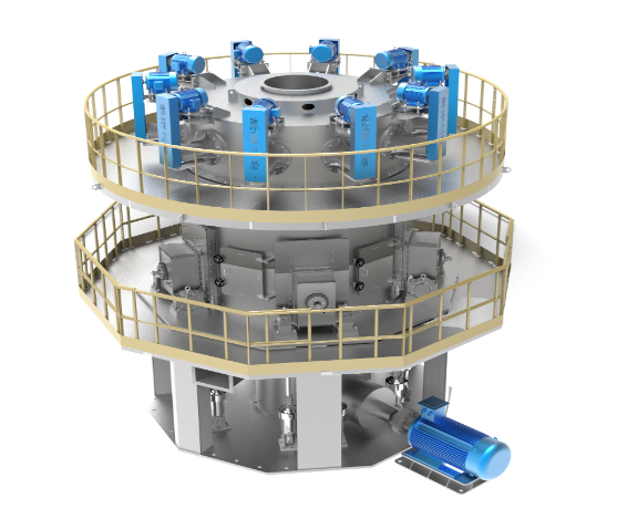 1、分級面積更大,效率更高。精準的粒徑分布,可根據所要求的收束點,調節控制,保持很小的粒徑分布。2、與同行產品相比同樣分級效果,工作頻率更低,物理壽命更長。產品穩定,連續可靠。通過變頻調分級輪轉速或調風閥開度可任意調節產品細度,產品品種的調節簡單方便。3、可大規模工業化分級生產,采用強力渦流分級原理設計,分級葉輪水平放置,有單葉輪和多葉輪結構,特別適合1250~6000目微粉大規模工業化分級生產。4、可設立獨立的分級系統,單獨使用。適合直聯各類粉磨設備(如球磨機、立式磨、氣流磨、環滾磨等),聯合組成閉路連續超細生產系統。5、全套分級機系統,采用PLC智能控制。可實現實時顯示,參數,指標,溫度,產量,細度等,并可做到可調可控。由于我司技術成熟,現已實現可與立磨系統,球磨機中控系統完美對接,或者自成―套中控系統。