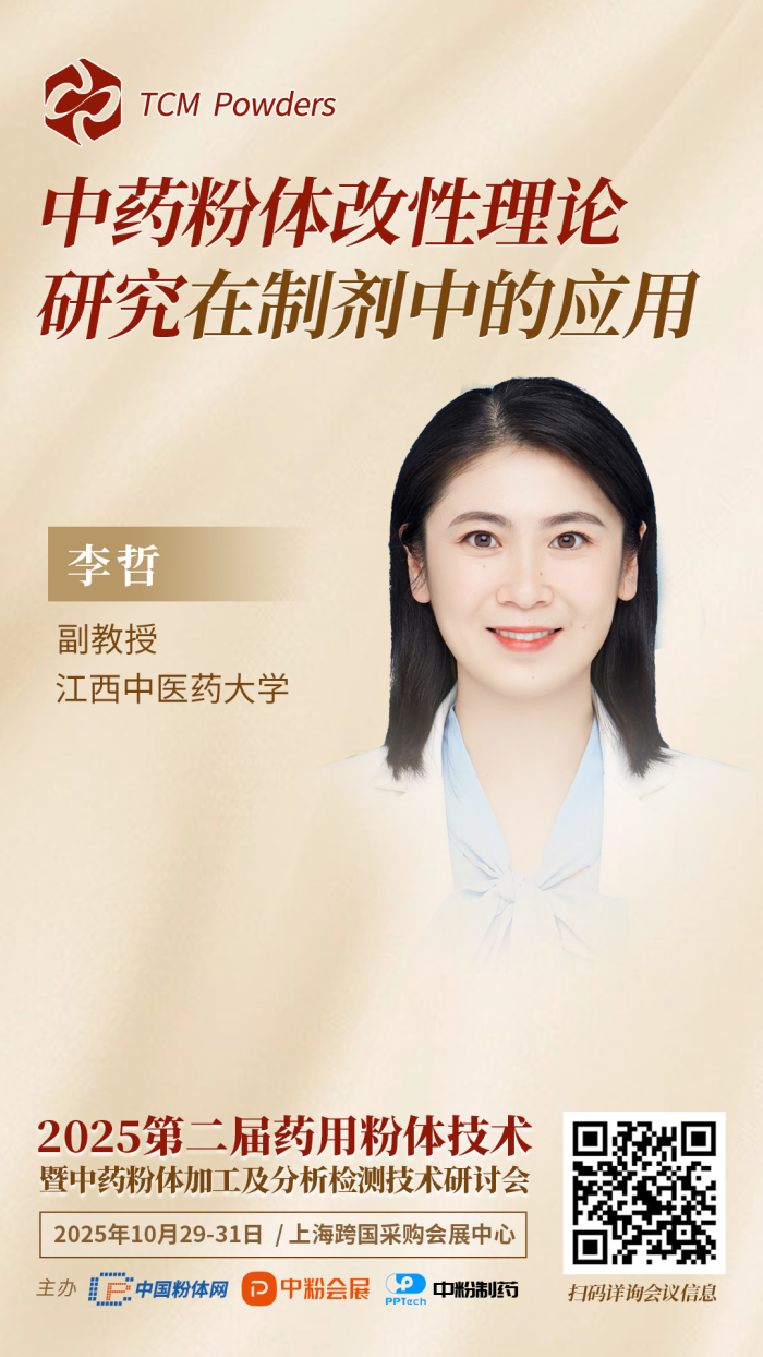 聚焦“從粉體技術(shù)、論中藥工藝”為主題,10月29-31日,中國粉體網(wǎng)將于2025IPIE上海高端粉體裝備與科學(xué)儀器展覽會期間,同期舉辦“2025第二屆藥用粉體技術(shù)暨中藥粉體加工及分析檢測技術(shù)研討會”,屆時江西中醫(yī)藥大學(xué)李哲副教授為大家?guī)怼?strong>中藥粉體改性理論研究在制劑中的應(yīng)用》的主題報告。報告主講人將講述課題組聚焦中藥固體制劑粒子成型這一核心關(guān)鍵環(huán)節(jié),以中藥提取物多組分雜糅導(dǎo)致玻璃化轉(zhuǎn)變溫度低易結(jié)塊這一現(xiàn)象為切入點,提出了“內(nèi)生橋”驅(qū)動的高載藥量中藥固體制劑粒子成型機制,系統(tǒng)揭示了在外加機械力、包衣液或潤濕劑等誘導(dǎo)或激發(fā)下,中藥內(nèi)部粒子間可發(fā)生塑性形變互相嵌合或液化連接等變化,產(chǎn)生“內(nèi)生橋”,促進(jìn)粒子成型;在該理論指導(dǎo)下,構(gòu)建中藥固體制劑成型關(guān)鍵技術(shù),實現(xiàn)高載藥量中藥固體制劑的制備。