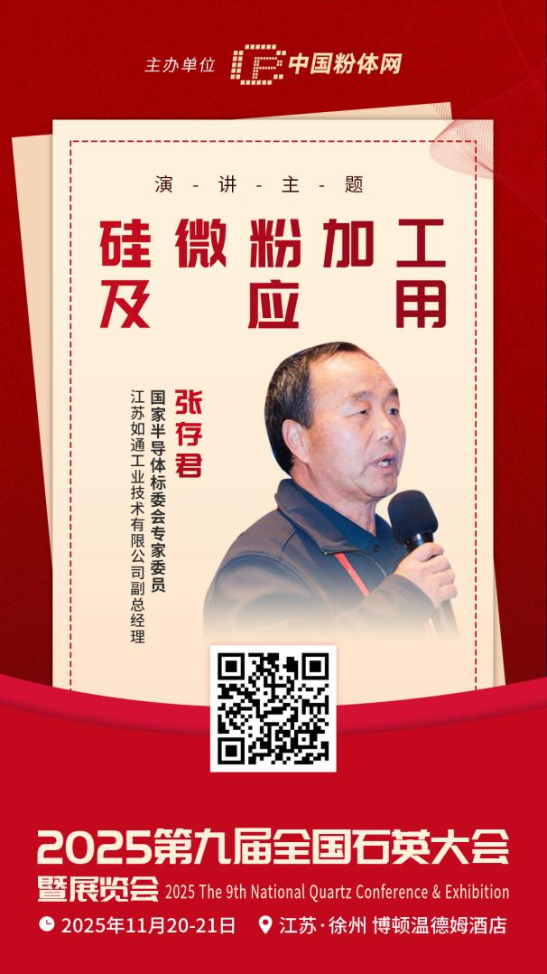 為了更深入地探討硅微粉加工技術(shù)的創(chuàng)新方向與應(yīng)用領(lǐng)域的拓展?jié)摿Γ?025年11月20-21日,中國粉體網(wǎng)將在江蘇徐州舉辦“2025(第九屆)全國石英大會(huì)暨展覽會(huì)”。屆時(shí),國家半導(dǎo)體標(biāo)委會(huì)專家委員、江蘇如通工業(yè)技術(shù)有限公司副總經(jīng)理張存君,將帶來題為《硅微粉加工及應(yīng)用》的報(bào)告。他將結(jié)合自身深耕硅微粉領(lǐng)域的豐富經(jīng)驗(yàn),解讀硅微粉加工及應(yīng)用等相關(guān)內(nèi)容,助力推動(dòng)硅微粉產(chǎn)業(yè)的高質(zhì)量發(fā)展。
