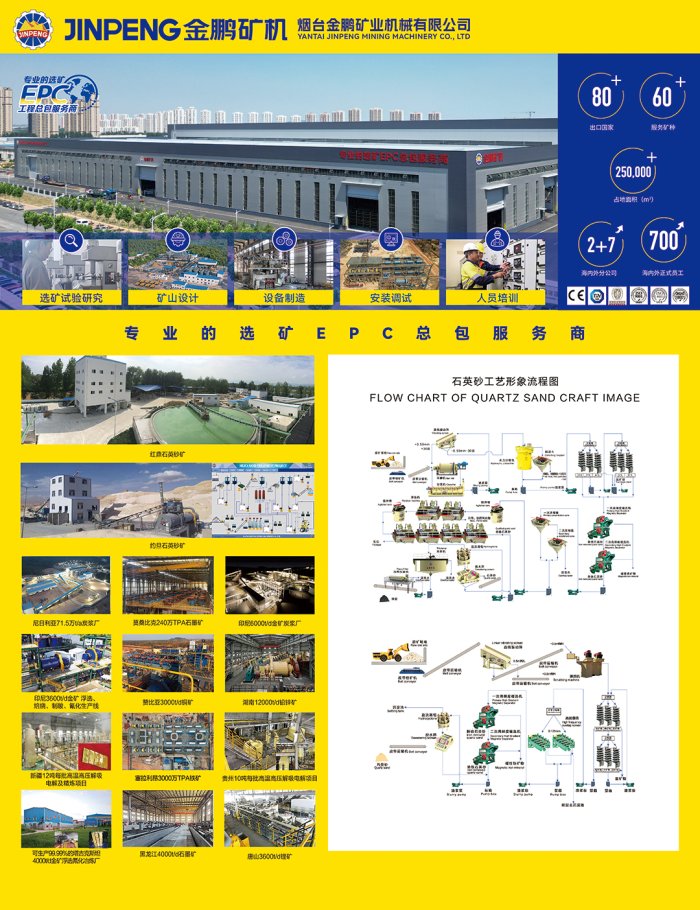 煙臺金鵬礦業機械有限公司位于風光迤邐的煙臺開發區,公司占地面積370畝,建筑面積230畝,現有職工500余名,其中工程技術人員200余人,年產值近10億元。中國黃金集團、山東黃金集團、紫金礦業、招金集團、恒邦股份等大型上市公司,也是金鵬礦機的合作伙伴。金鵬礦機在立足中國的同時,EPC工程已遍布世界七十多個國家和地區,其完善的選礦試驗研究,工程設計,設備供應,安裝調試,人員培訓深受國外礦企的歡迎,并成為國外礦企重要的合作伙伴!