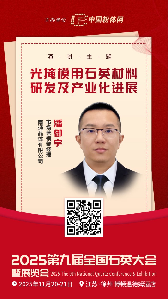 2025年11月20-21日,中國粉體網將在江蘇徐州舉辦“2025(第九屆)全國石英大會暨展覽會”。屆時,南通晶體有限公司市場營銷部經理潘御宇將帶來題為《光掩模用石英材料研發及產業化進展》的報告,深度解讀行業關鍵技術瓶頸與未來發展方向。