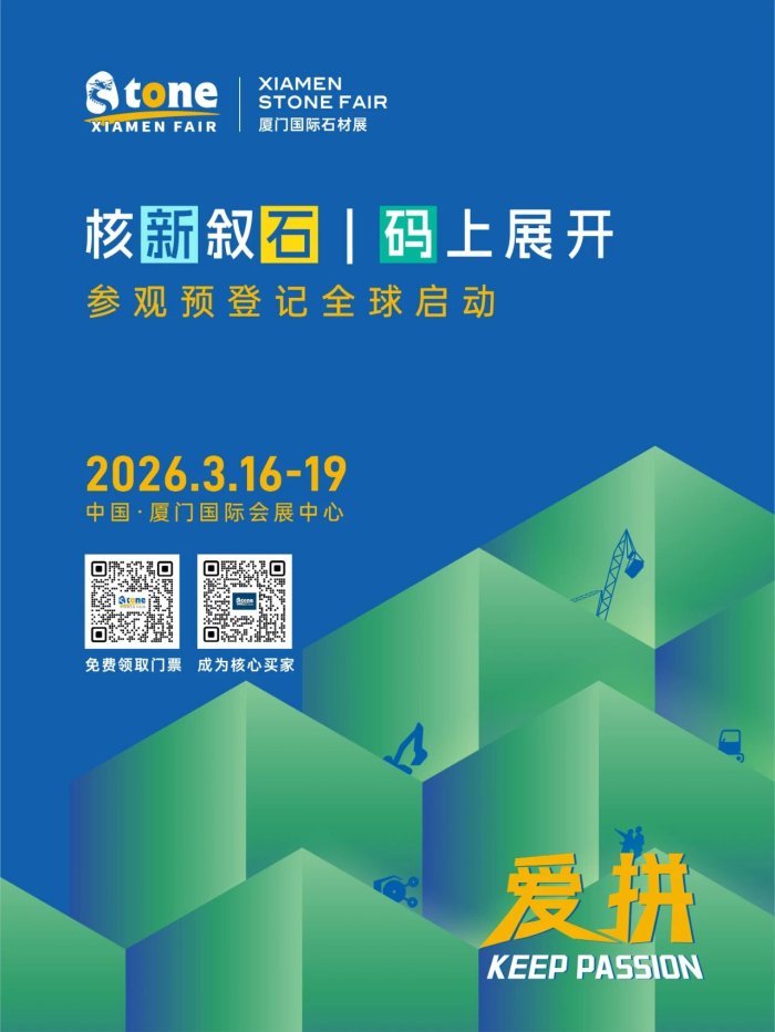 ✨ 2026年3月16-19日,第二十六屆中國廈門國際石材展深度聯合全球參展企業、權威商協會、行業和設計媒體KOL,圍繞“新品、新技術、新渠道”三大核“新”,敘“石”、蓄勢,共同探索和詮釋石界新生態的不斷融合和更新。
