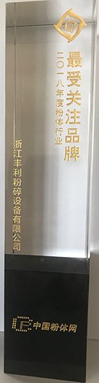日前,2018粉體行業年度獎項評選揭曉,國家高新技術企業、享有“中國粉碎機專家”美譽的浙江豐利粉碎設備有限公司榮獲“最受關注品牌”稱號。這是浙江豐利繼2013年、2015年HWV系列旋風磨連續兩屆上榜、2017年CGM1000超細輥壓磨獲“最受關注產品”之后,再度獲此行業殊榮。