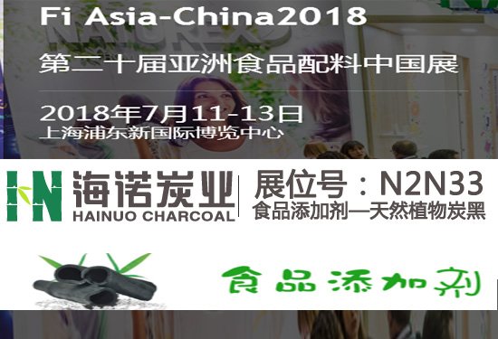 Fi Asia-China2018第二十屆亞洲食品配料中國(guó)展將于7月11-13日在上海新國(guó)際博覽中心舉行,上海海諾炭業(yè)有限公司作為超細(xì)天然植物炭粉制造商應(yīng)邀參加,展位號(hào):N2N33、歡迎蒞臨商洽!