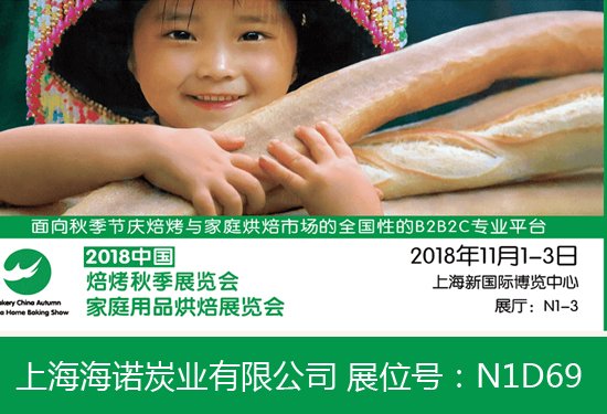 由中國(guó)焙烤食品糖制品工業(yè)協(xié)會(huì)主辦的2018秋季焙烤展將于11月1--3日在上海新國(guó)際博覽中心舉行。上海海諾炭業(yè)有限公司作為天然食品添加劑生產(chǎn)制造供應(yīng)商展應(yīng)邀參展,展位號(hào):N1D69,期待11月會(huì)展見!