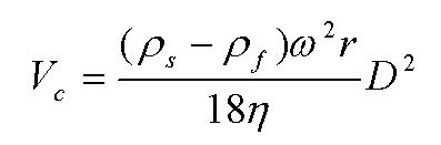 為了加快細顆粒的沉降速度,縮短測試時間,提高測試精度,許多沉降儀引入了離心沉降手段來加快細顆粒的沉降速度。離心狀態下粒徑與沉降速度的關系如下: