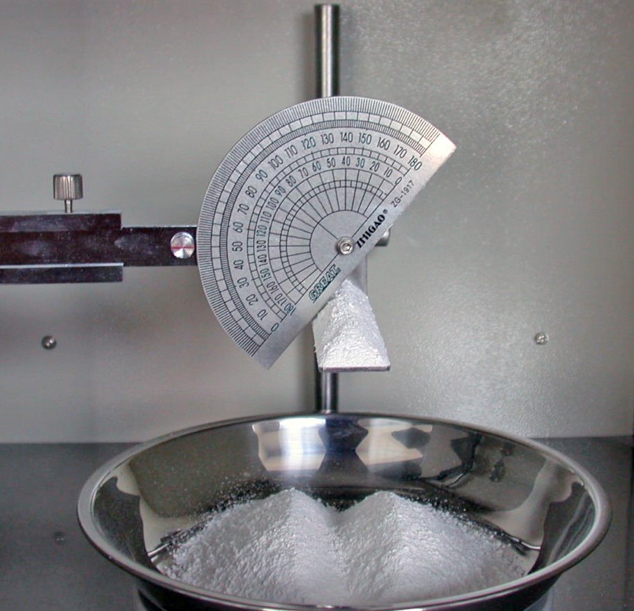 流動性指數 : 流動性指數是將安息角、壓縮度、平板角、均齊度、凝集度等項指數的加權求和得到了一組數值,用來綜合