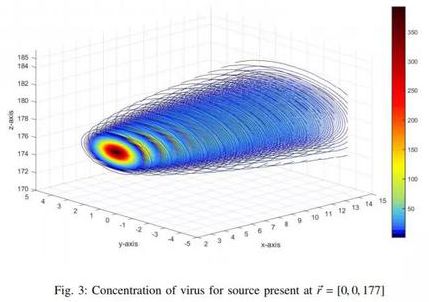 那么,病毒在空氣中擴(kuò)散是什么樣子的呢?沙特阿拉伯的阿卜杜拉國(guó)王科技大學(xué)的研究人員構(gòu)建了一個(gè)模型,模擬含病毒的氣溶膠擴(kuò)散實(shí)驗(yàn),結(jié)果如下: