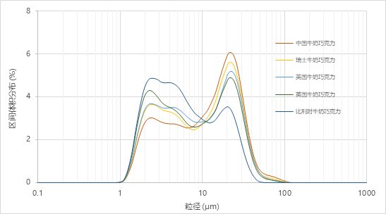 除了因種類、所含成分不同而導致的巧克力粒度變化,同一種類但銷售于不同國家的巧克力之間是否也存在粒度的差異呢?