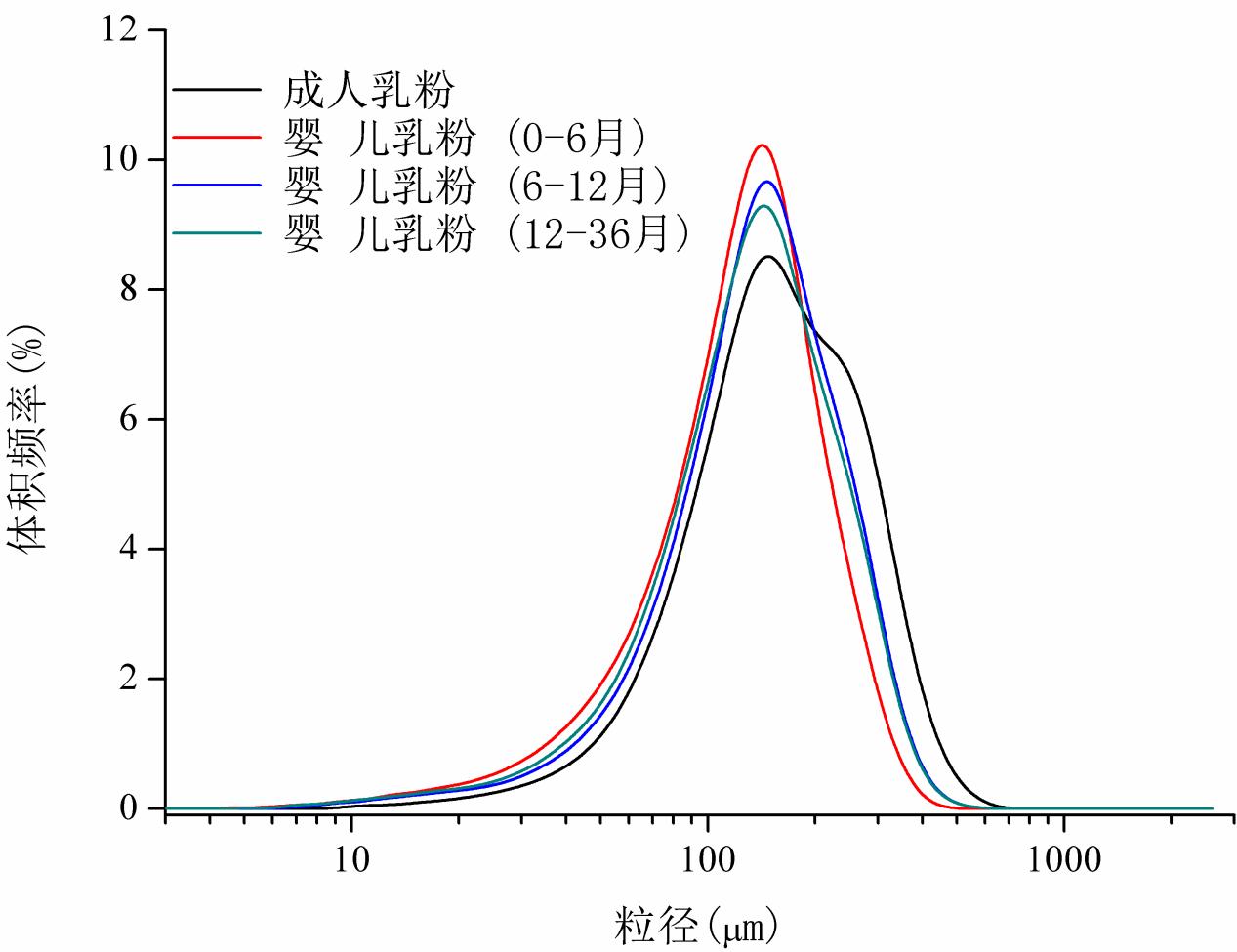圖2. 嬰兒乳粉與成人乳粉的粒度分布