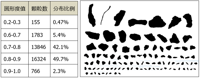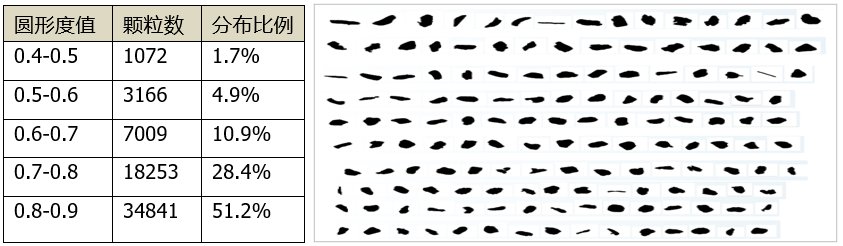 圖| 1號樣品部分顆粒的圓形度和粒形