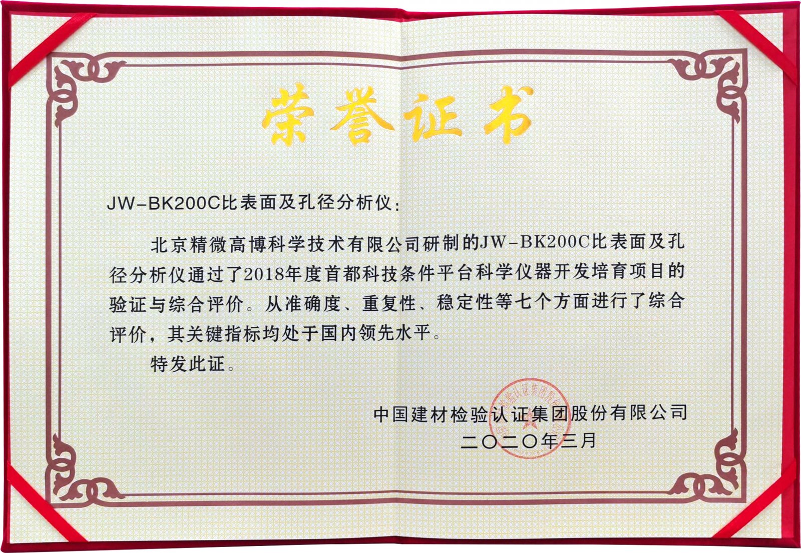 近日,在2018年度首都科技條件平臺科學(xué)儀器開發(fā)培育項目的認證工作中,精微高博自主研發(fā)的JW-BK200C比表面及孔徑分析儀憑借領(lǐng)先的技術(shù)實力、卓越的市場表現(xiàn),以及與建材行業(yè)場景的極致契合,得到專家組各評委的高度肯定,順利通過認證。