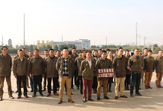 在上午的啟動儀式上,總裁吳建明先生發(fā)表了熱情洋溢的重要講話。長久以來,總裁吳建明先生都非常重視產(chǎn)品質(zhì)量的提高,一直把“產(chǎn)品質(zhì)量是密友人的生命”奉為企業(yè)發(fā)展的宗旨,他常叮囑:要牢記“產(chǎn)品質(zhì)量+服務(wù)質(zhì)量=贏得市場”;謹記“聽、看、問、學(xué)、用”;銘記“客戶要求就是我們的工作目標,客戶滿意就是我們努力的方向”。希望大家不忘初心,牢記使命,踏實工作,砥礪奮進,為密友客戶提供優(yōu)質(zhì)、周到、滿意的服務(wù)。吳建明先生強調(diào),對密友來說,每年度的315質(zhì)量萬里行意義非常重大,主動走出去聆聽客戶意見,有助于對外快速占領(lǐng)市場,對內(nèi)嚴格紀律、增產(chǎn)降本、提高工效,充分調(diào)動員工積極性、增加員工收入。當前公司萬事俱備只欠東風,2018我們一起努力干,上下一致,齊心協(xié)力,共創(chuàng)輝煌!