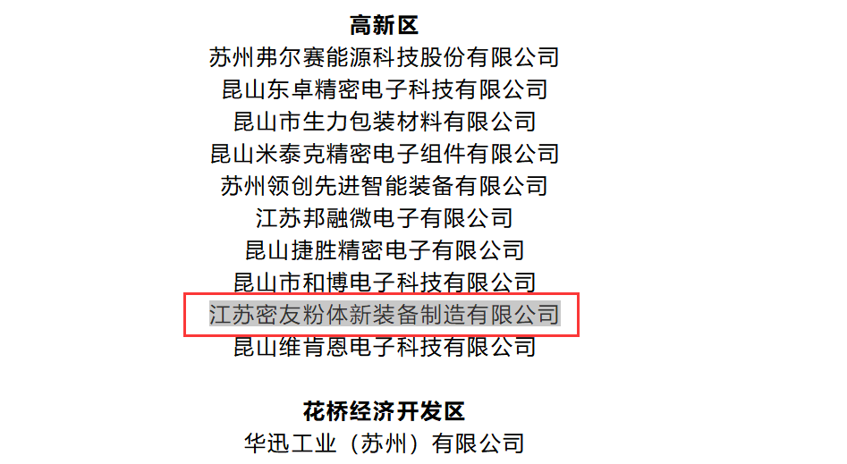 江蘇密友粉體上榜昆山市企業(yè)技術(shù)中心備案名單!